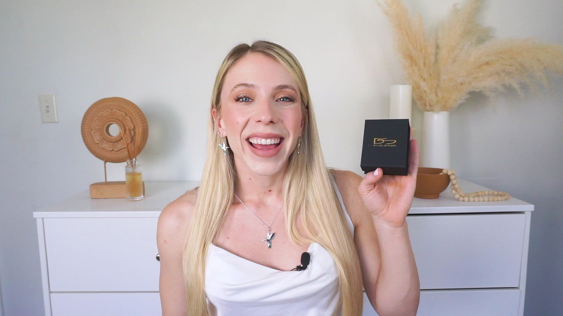 Known for its stunning rainbow-like iridescence, Abalone is a material that captures light in a way that feels almost magical. This jewelry celebrates Abalone’s unique wave-like patterns, incorporating its natural brilliance into the body and wings of the hummingbird. The result is a design that feels alive, its colors shifting and sparkling with every movement.